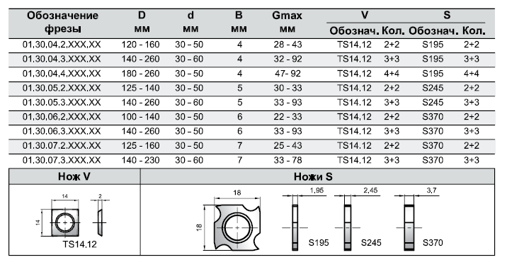 Фрезы пазовые нерегулируемые серии 01.30 ИБЕРУС-КИЕВ