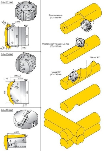 Комплект фрез 09.2984.00 предназначен для фрезеровки чашек на домостроительном брусе, а также для выборки монтажных и конструктивных пазов.Конструкция может меняться в зависимости от специфики оборудования, на котором эксплуатируются эти фрезы.