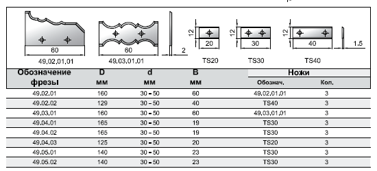 Все фрезы оснащены твердосплавными ножами, что обеспечивает большой ресурс инструмента.