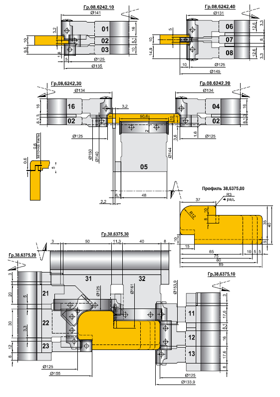 Комплект фрез для профиля дверной коробки для четырехстороннего станка ИБЕРУС-КИЕВ
