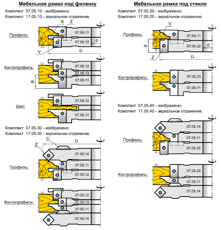 Использование комплекта 07.05.00 возможно как на фрезерном, так и на четырехстроннем станке. Также возможно изменить конструкцию фрез для производства фасадов на станке ЧПУ.