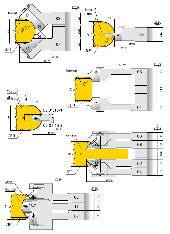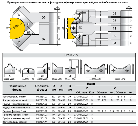 Комплект дверных фрез 03.2831.00 ИБЕРУС-КИЕВ предназначен для производства шпонированных дверей с соединением элементов дверного полотна шкантами.Достоинствами комплекта являются - возможность регулировки толщины паза под филенку без изменения толщины полотна; наличие предусмотренных зазоров для последующего шпонирования; возможность обработки (скругления) дверного полотна по периметру фрезами из дверного комплекта для контрпрофиля; обработка места склейки МДФ и дерева стандартными ножами или профильными ножами с двойным ресурсом.