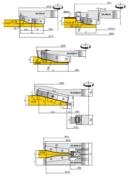 Как правило, данные фрезы имеют достаточно простой профиль для облегчения последующей облицовки шпоном.