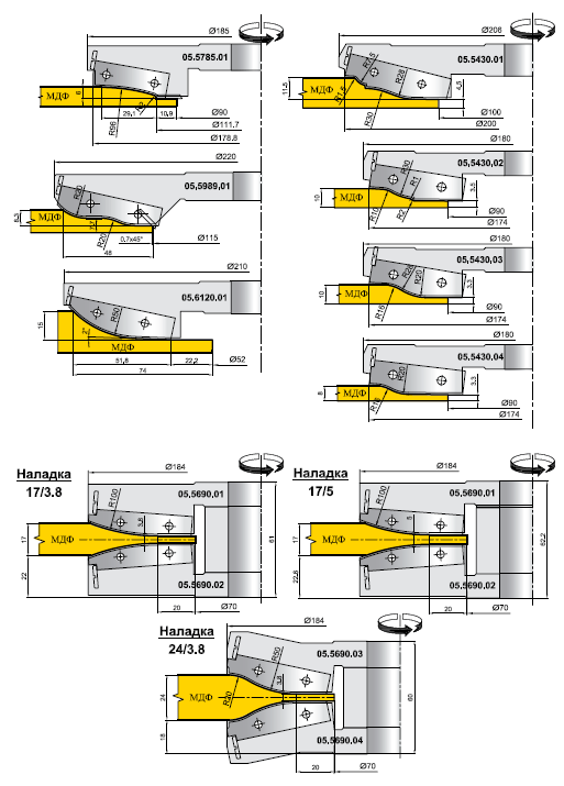 Фрезы ИБЕРУС-КИЕВ применяются для филенок под последующую покраску или облицовку шпоном. В последнем случае профиль фрезы отличается от профиля готовой филенки на толщину шпона.