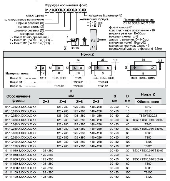 Стандартная программа фуговальных фрез серии 01.10 / 01.11