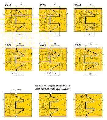 Варианты фрез для дверей, которые ранее производились компанией ИБЕРУС-КИЕВ. В профиль можно внести изменения по желанию заказчика ...